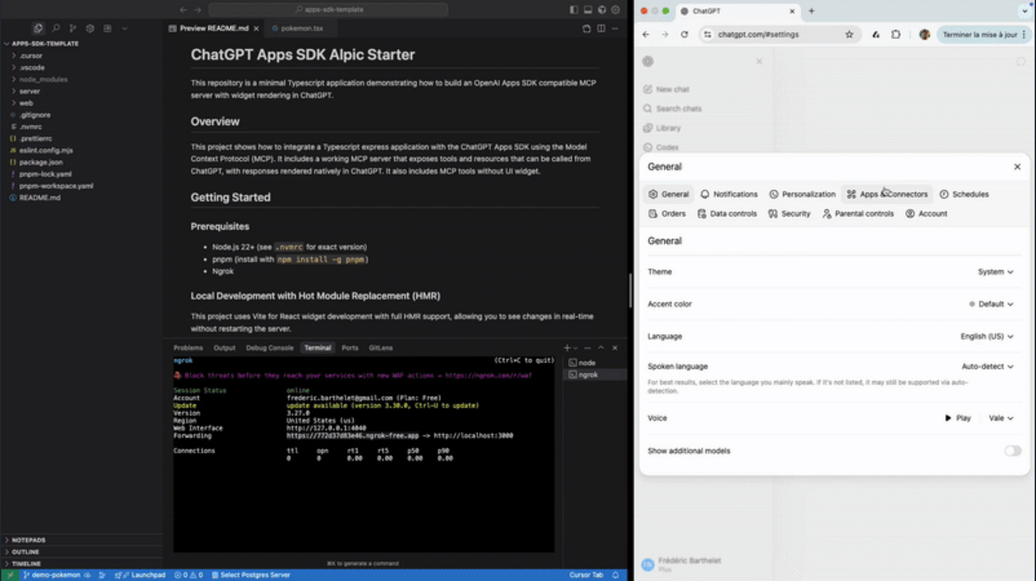 🎛️ OpenAI Apps SDK-compatible MCP - Alpic released a minimalist SDK-compatible MCP ChatGPT app template for rapid prototyping, featuring a Vite dev server with HMR, widget-to-endpoint mapping via file conventions, one-click deploy on Alpic, and built on the official Model Context Protocol SDK. No platform lock-in. (👉 Nikolay Rodionov @ Alpic)