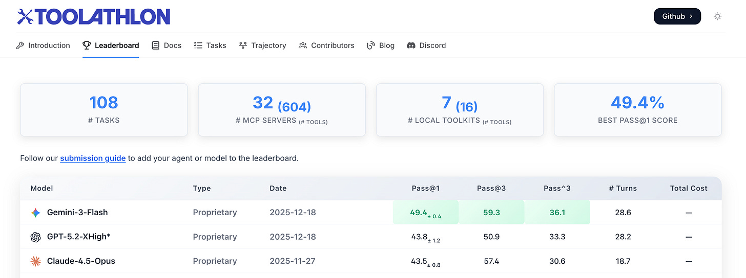 🏆 Gemini 3 Flash Tops Toolathlon Leaderboard - Gemini 3 Flash ranks first on Toolathlon benchmark for agentic tool-use capabilities, reflecting Google’s sustained investment and progress in reinforcement learning and agent execution.