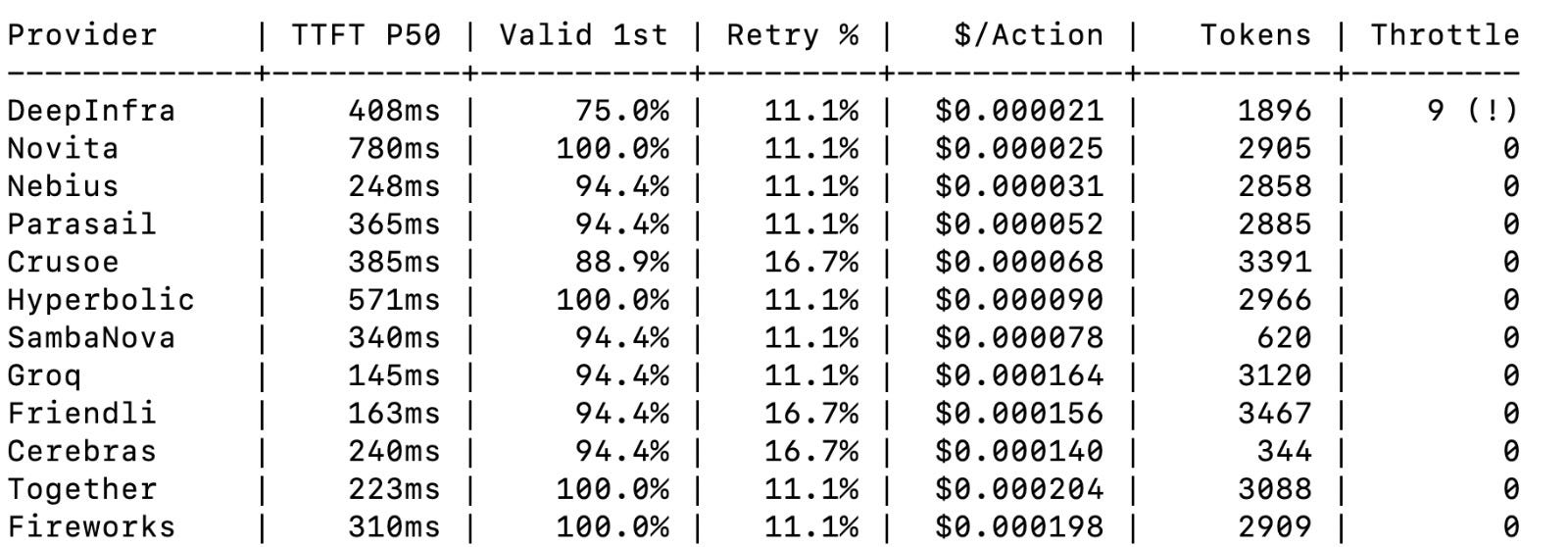 📊 LLM inference provider benchmark results – Tejas Chopra (Netflix) has shared a glimpse of his work in progress on a comprehensive benchmark of 12 LLM inference providers on Llama 3.3 70B using agent-style microtasks. It revealed significant performance differences.