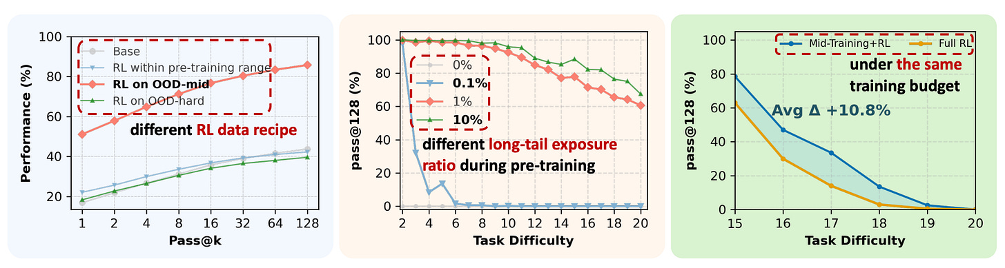 🧠 Research on RL training scope - RL on math-like tasks studies how pre-training, extra supervised training, and RL combine to improve reasoning. It finds that when and where you apply RL matters as much as how much you use. (🙏 Gabriel Olympie)