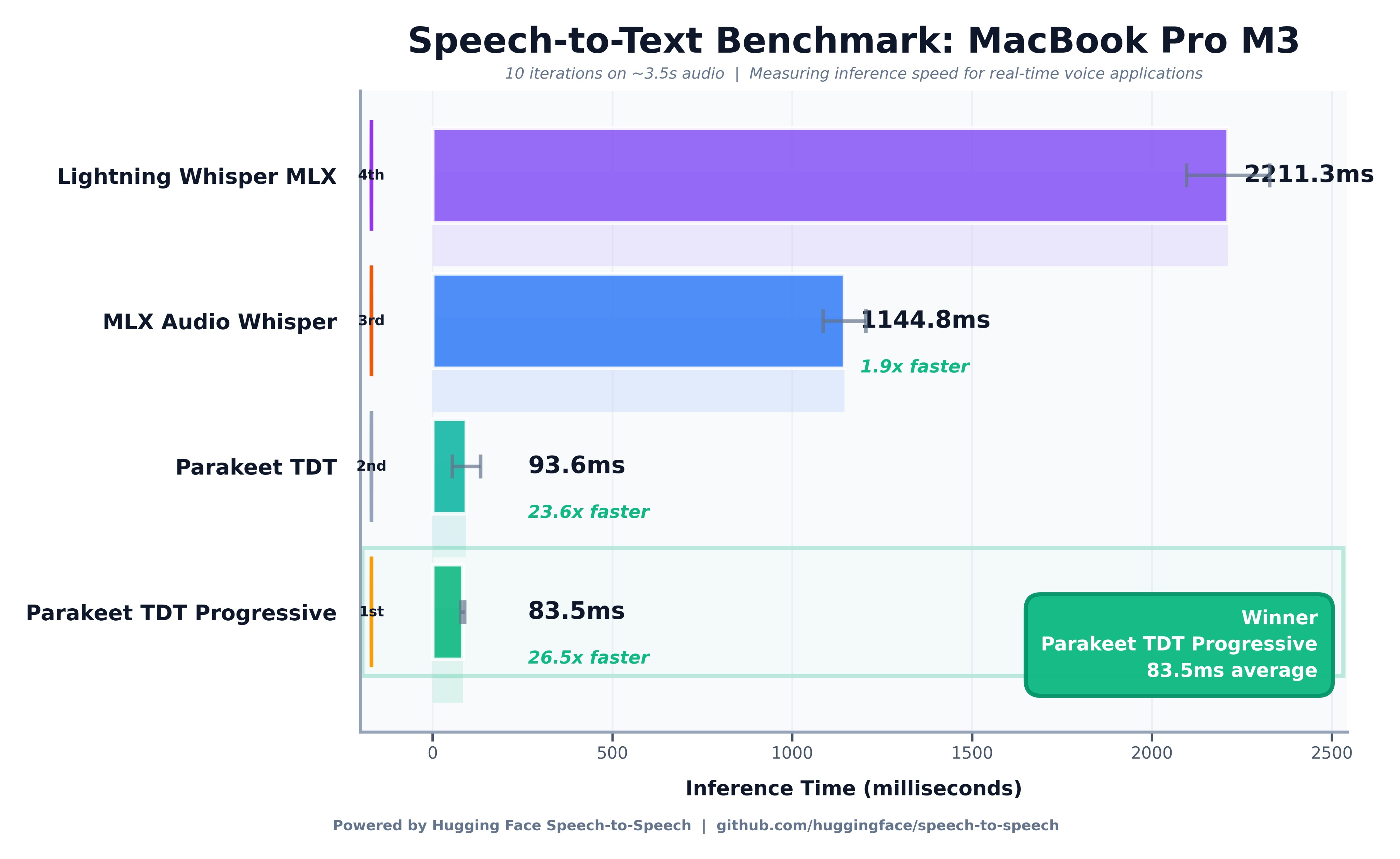 ⚡ Nvidia Parakeet Achieves 26x Real-Time Transcription - Nvidia’s Parakeet transcribed 6 seconds of audio in 83ms on an M3 MacBook Pro, running 26x faster than Lightning Whisper, demonstrating that local real-time voice AI capabilities have arrived.