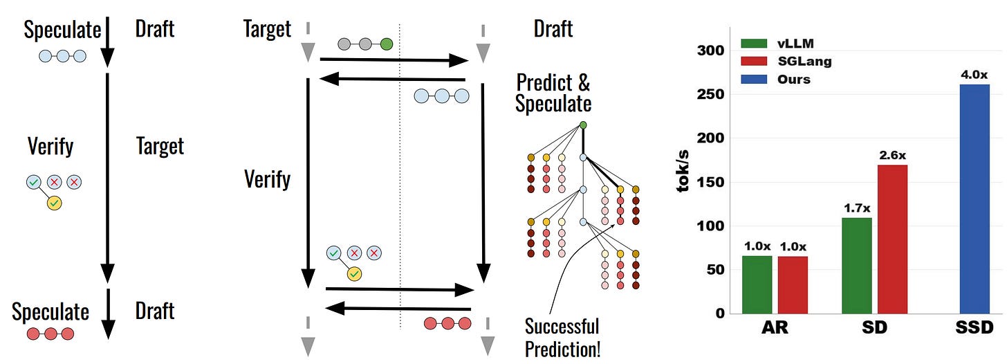 🏎️ Speculative Speculative Decoding claims 2x over top engines – SSD, co-developed with Tri Dao and Avner May, stacks speculative decoding at multiple levels of the inference stack simultaneously, compounding gains that single-level approaches cannot achieve. Co-authorship with Tri Dao, the FlashAttention author, lends the work significant credibility in the inference optimization community.