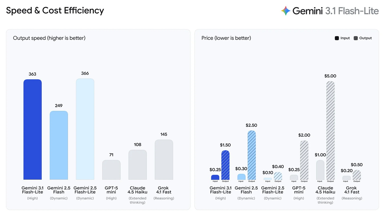 ✨ Gemini 3.1 Flash-Lite targets cost-efficient inference at scale – Google DeepMind’s newest addition to the Gemini 3 series prioritizes price-per-token over raw capability. Community questioned why benchmarks compared it to Gemini 2.5 rather than other Gemini 3 variants.
